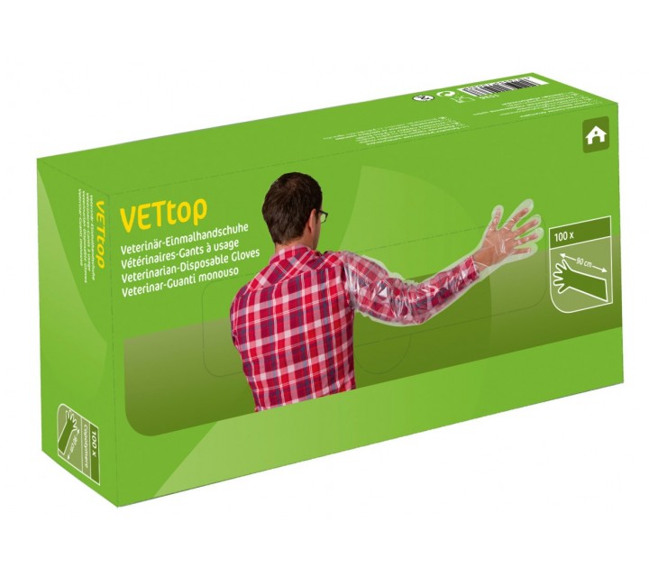 Ветеринарни ръкавици за еднократна употреба, 90 см, 100 бр. в пакет