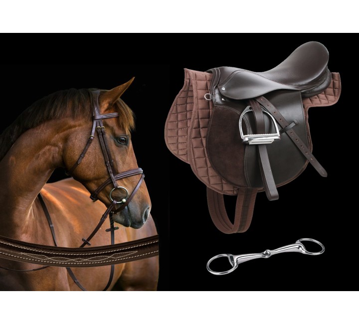 Оборудване за кон-седло, юзда и трензела-кафяв цвят
