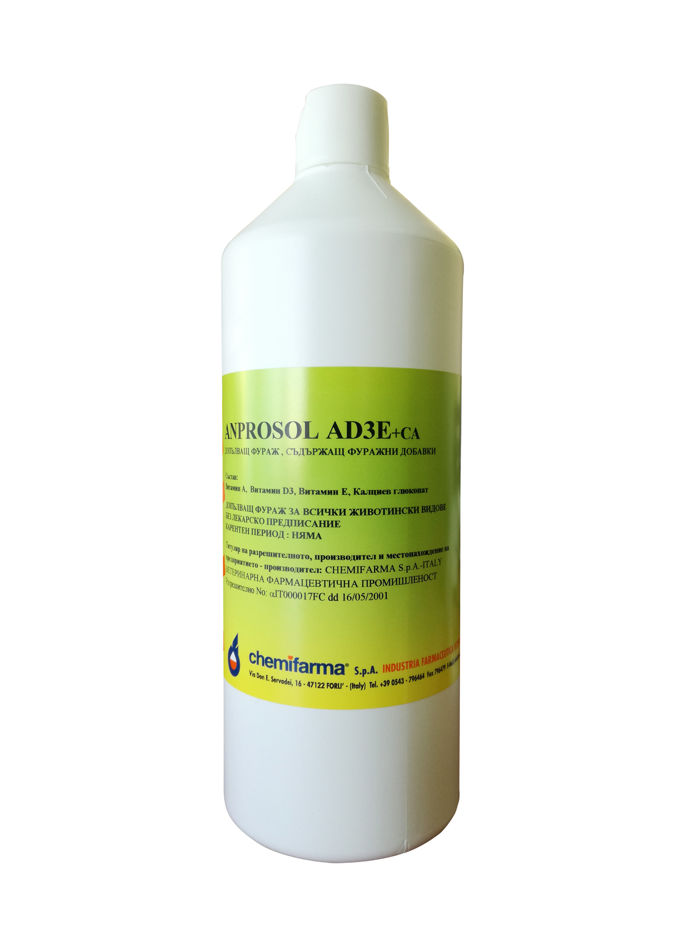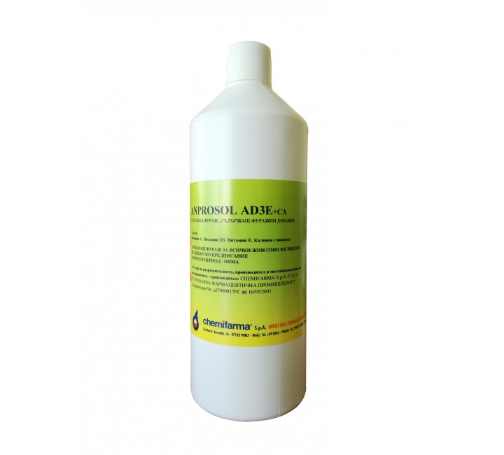 Хранителна  стойност : ANPROSOL AD3E + Ca се прилага в случаи на костна калцификация, рахит, липса и чупливост на яйчните черупки и всички проблеми свързани с промяна на костната тъкан. Витамин D3 регулира и коригира калциевия и фосфорен  метаболизъм в кръвта и играе важна роля в усвояването на калция и фосфора в червата. Особено при  младите, растящи животни витамин D3 е от съществено значение за нормалното развитие на скелета и зъбите. Витамин Е е мастно разтворим вътреклетъчен антиоксидант, които участват в стабилизиране на ненаситените  мастни киселини, като по този начин предотвратява образуването на токсични липопероксиди. Освен това, витамин Е предпазва кислород чувствителен витамин А от окислително разрушаване в този препарат. Калцият( Ca ) участва в минерализацията и в строежа на костите и зъбите. Участва и в обмяната на другите минерални вещества (магнезий, фосфор, натрий, цинк, манган).